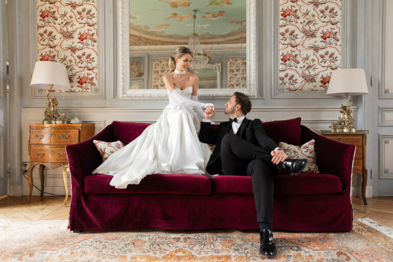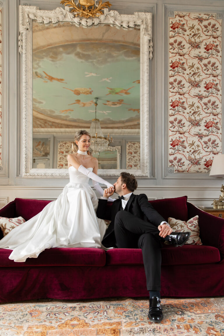As a wedding photographer in France, I consider myself lucky to have the ability to photograph love stories in some truly breathtaking locations. Château Sainte Sabine near Dijon is one of those unforgettable places, perfect for your dreamy destination wedding. Tucked away in the heart of Burgundy, Château Sainte Sabine charmed Sarah and Tom with its fairytale architecture, glamorous interiors and sweeping views of the French countryside.